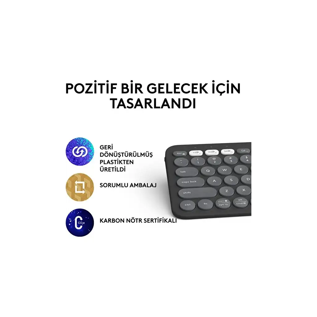 Logitech Pebble Keys 2 K380S Multi-Device Bluetooth TR Klavye - Grafit