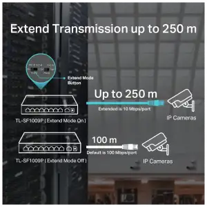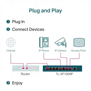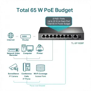 Tp-lınk Tl-sf1009p, 8 Port, Megabit, Poe 65w, 1 Port Uplink, Yönetilemez, Metal Kasa, Masaüstü Switch